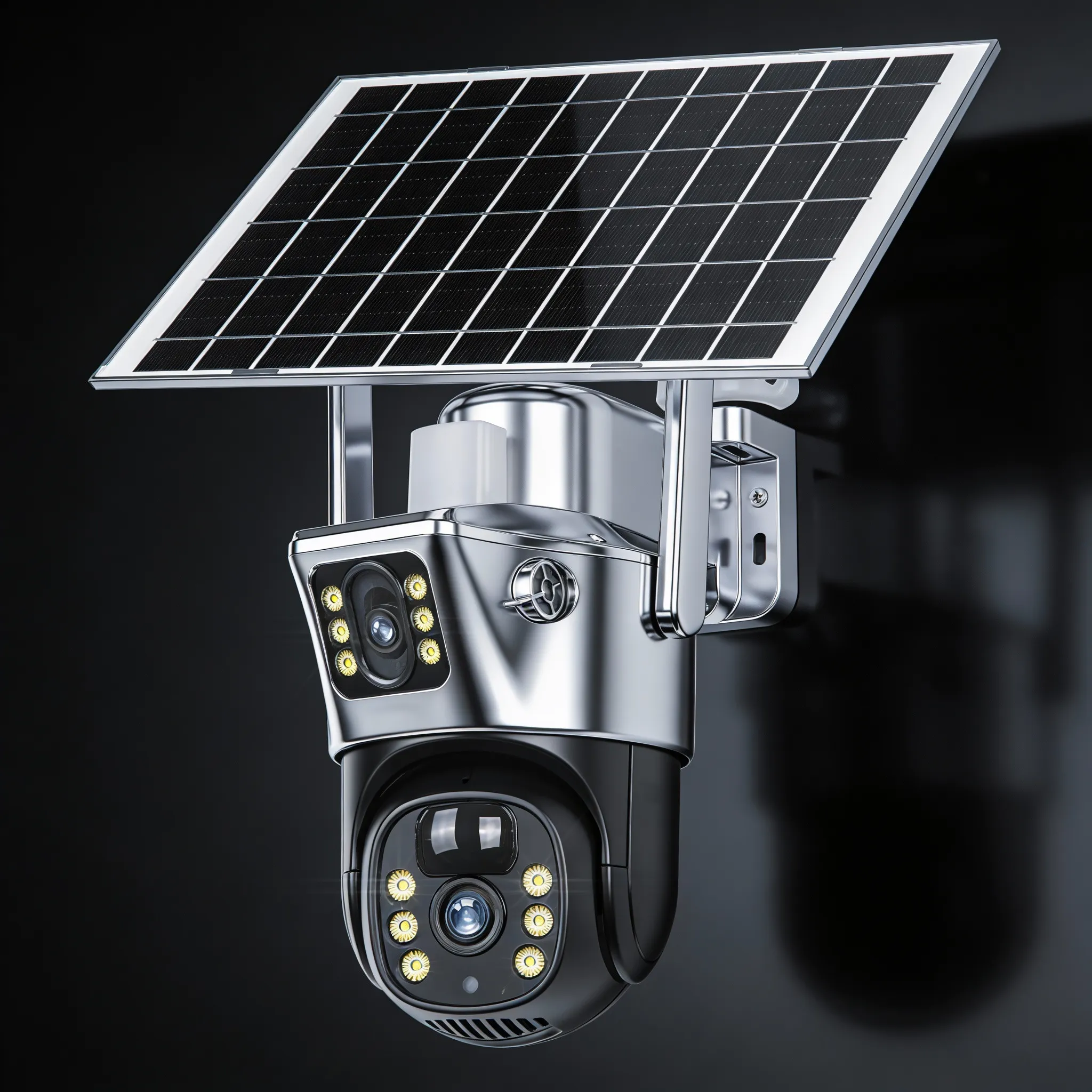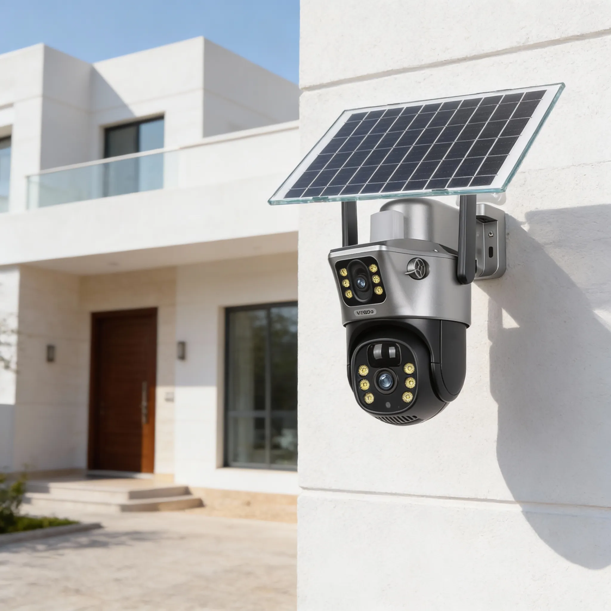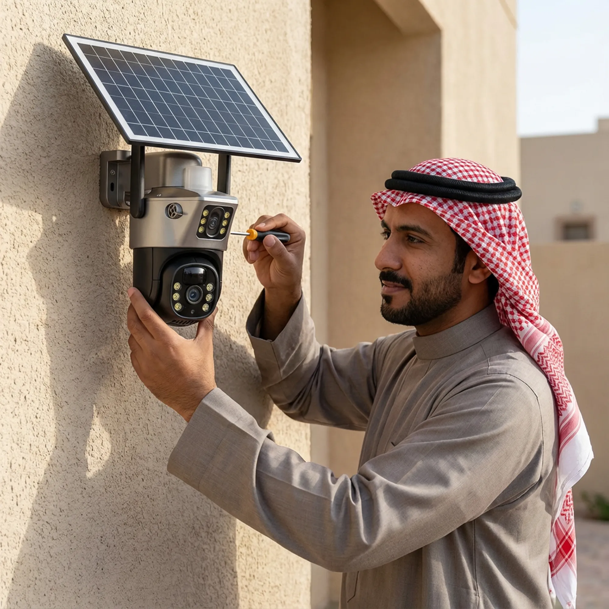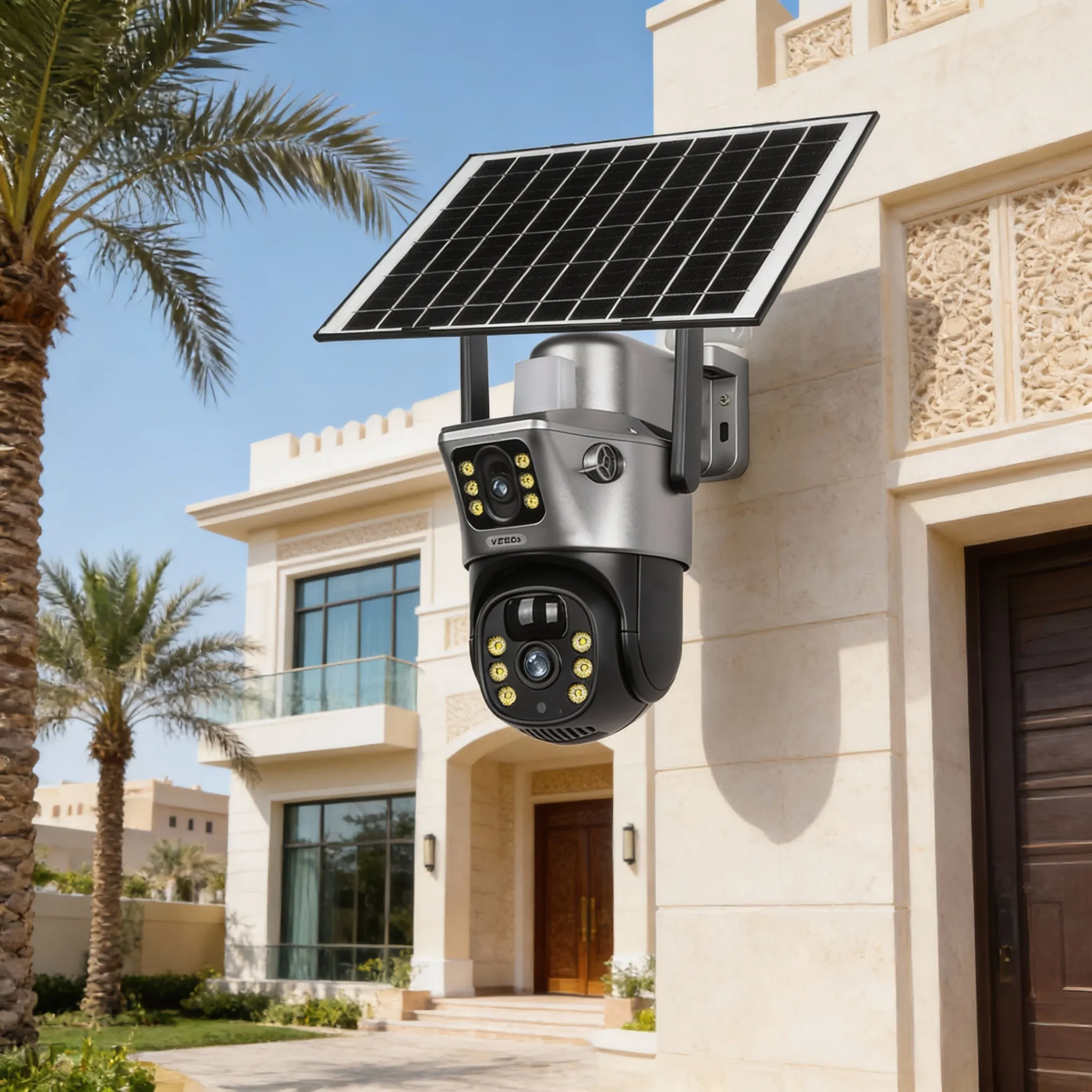 كاميرا بالطاقة الشمسية عدسة مزدوجة الشريحة ( ضمان 6 اشهر )