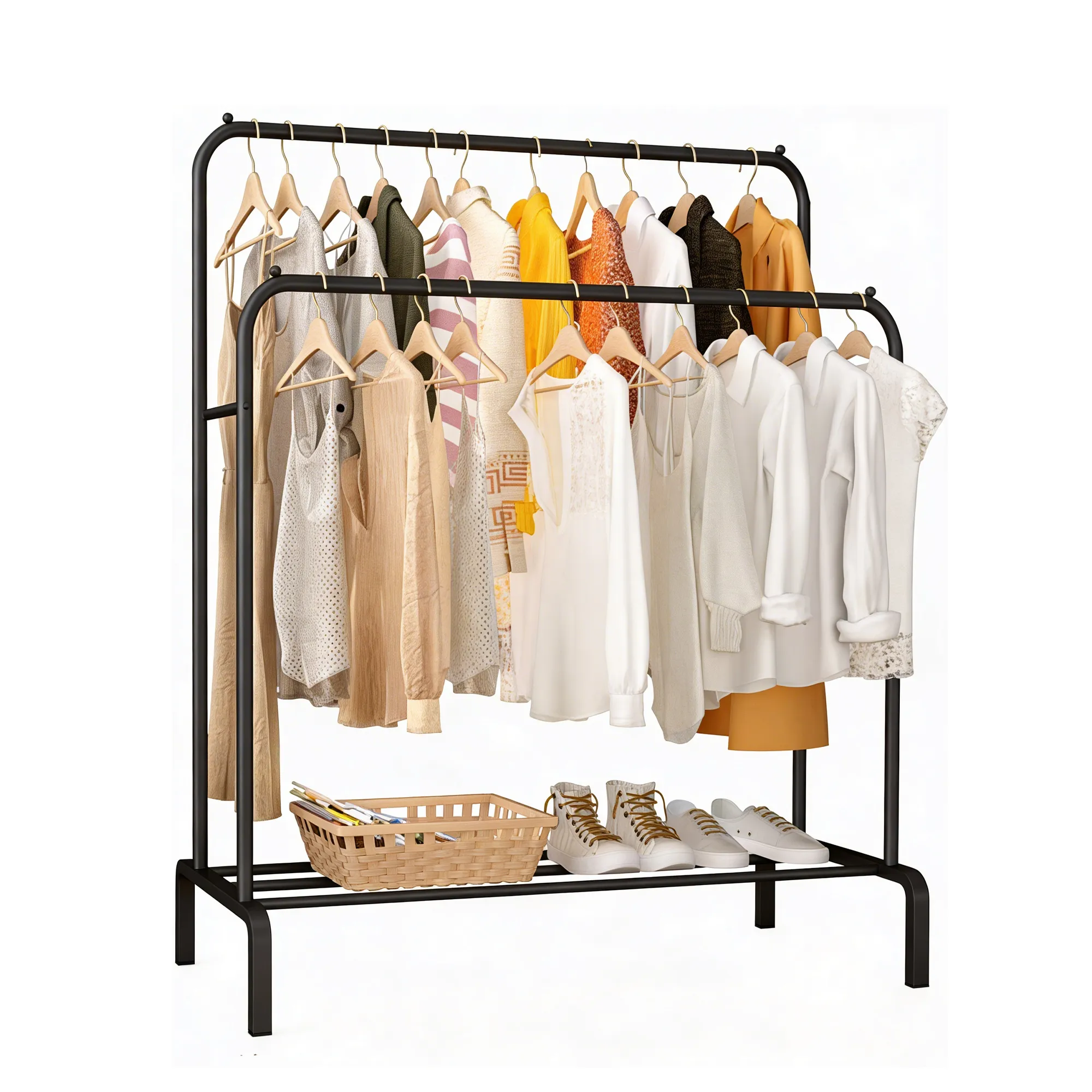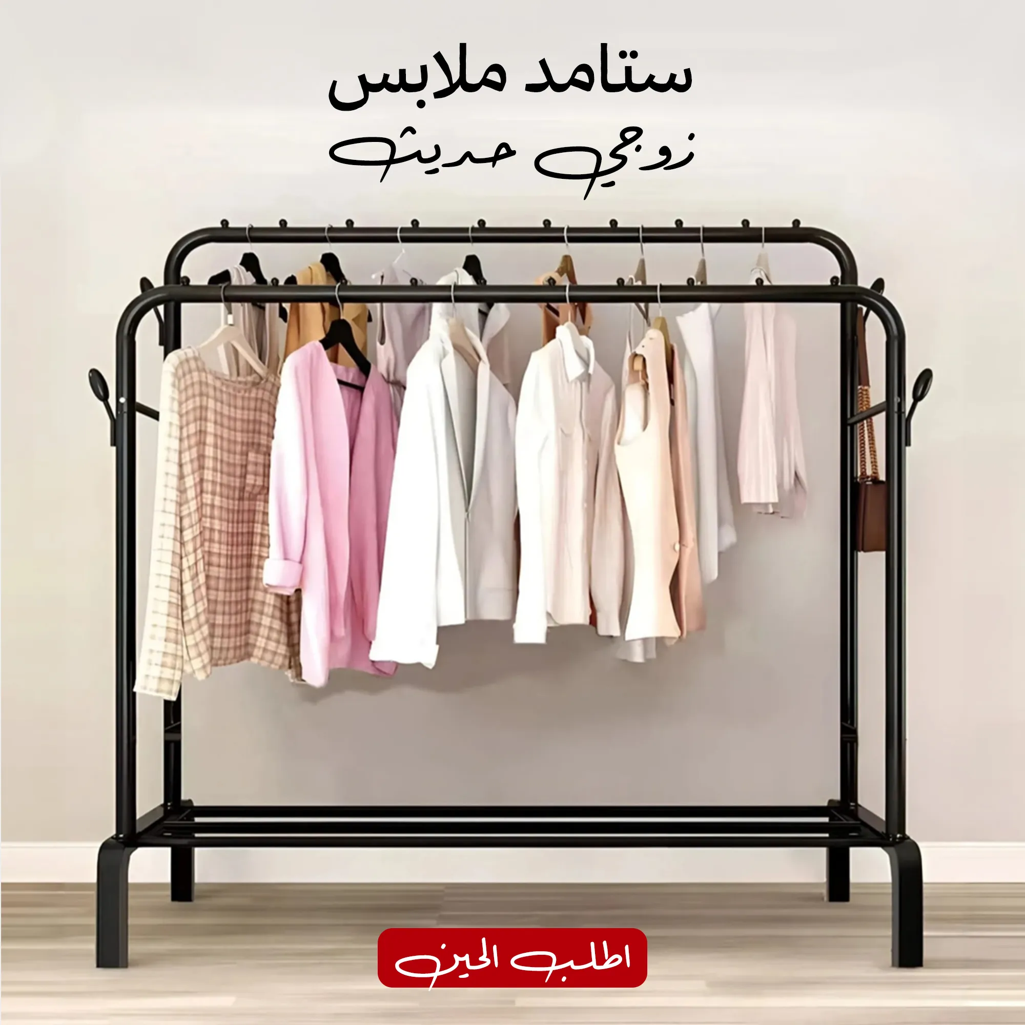 قضيب مزدوج يوفر مساحة كبيرة لتعليق الملابس والإكسسوارات